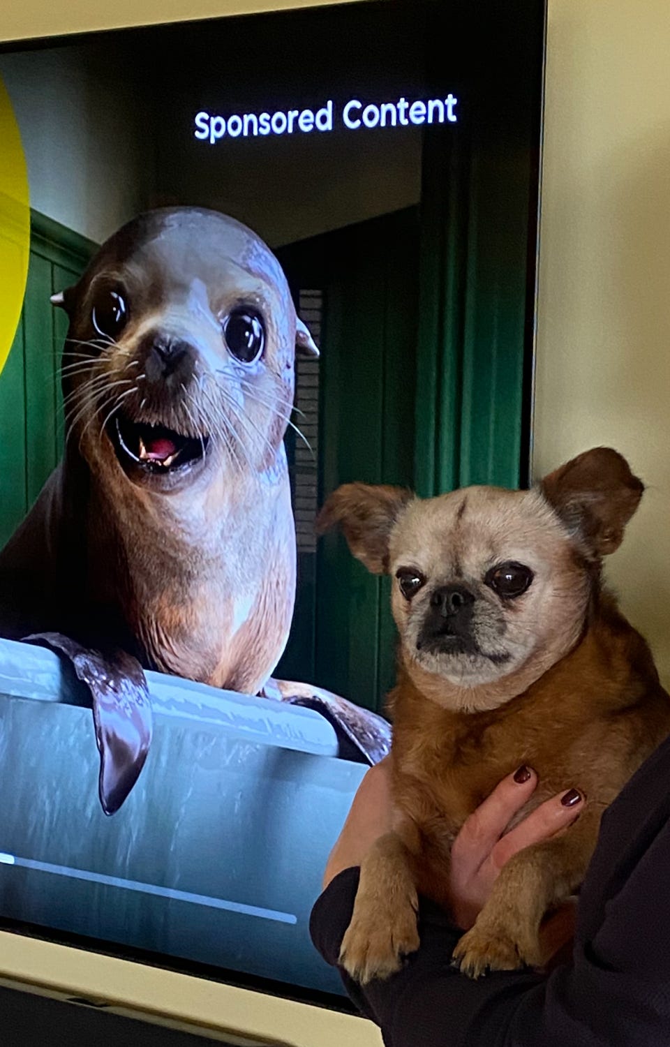 And in case you need a giggle today, may I show you how similar our little dog Chloe is to the AI-looking seal on a recent television advertisement?