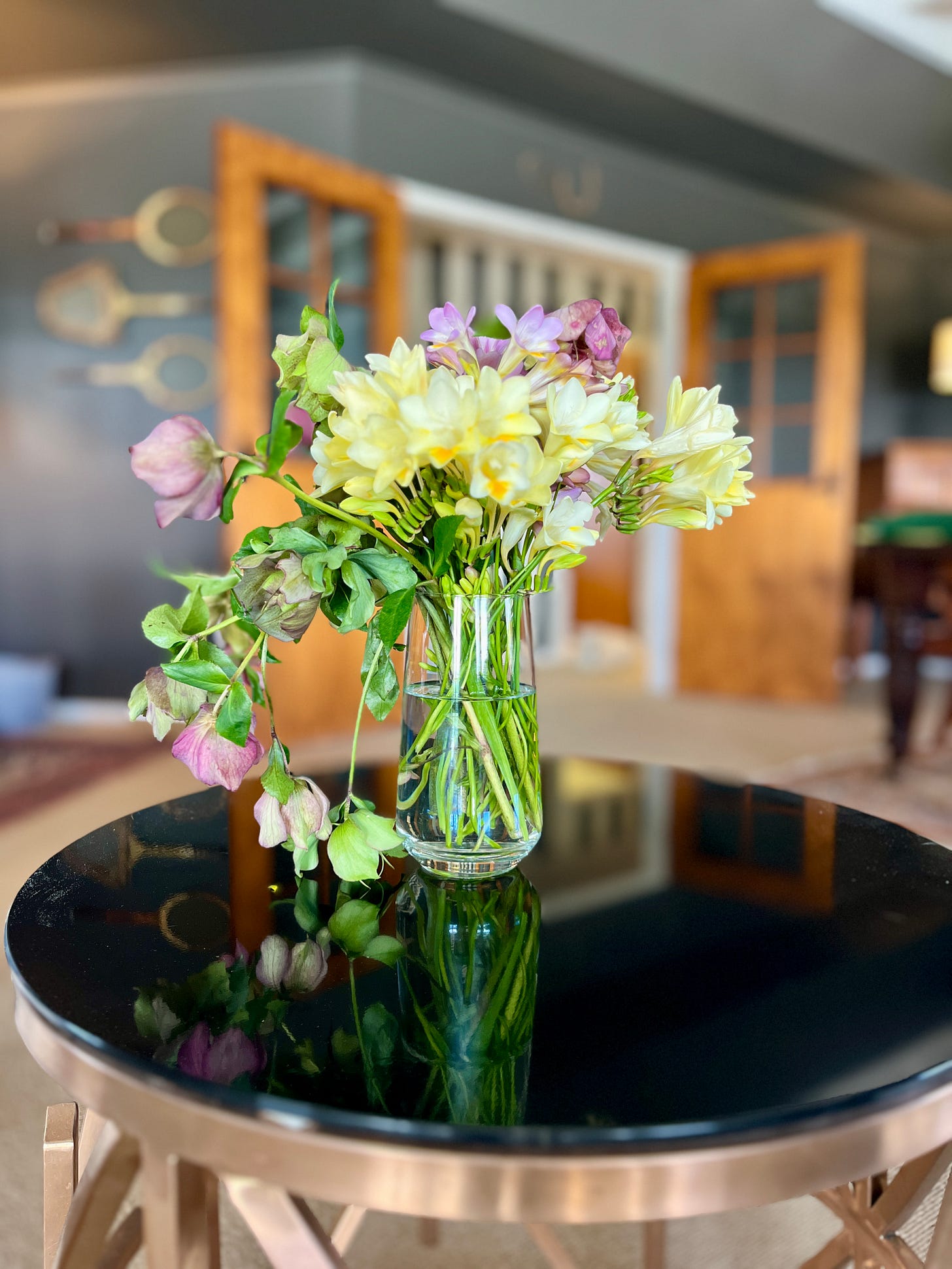 Beautiful spring freesias and hellebores/winter roses. Aren’t the colours divine? I always love pink and yellow together (or pink and gold in decor/colours in general)