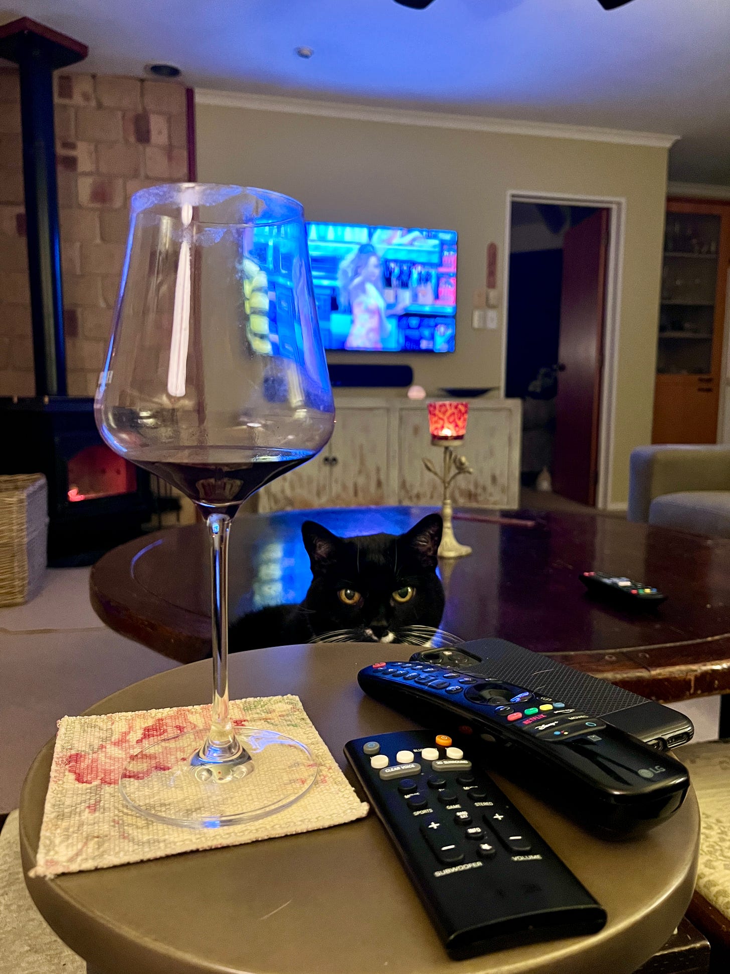 Our pizza and red wine movie dinner was delicious - we buy the bases (gluten-free for me) and make our own. I had salami, blue cheese and capsicum π«
